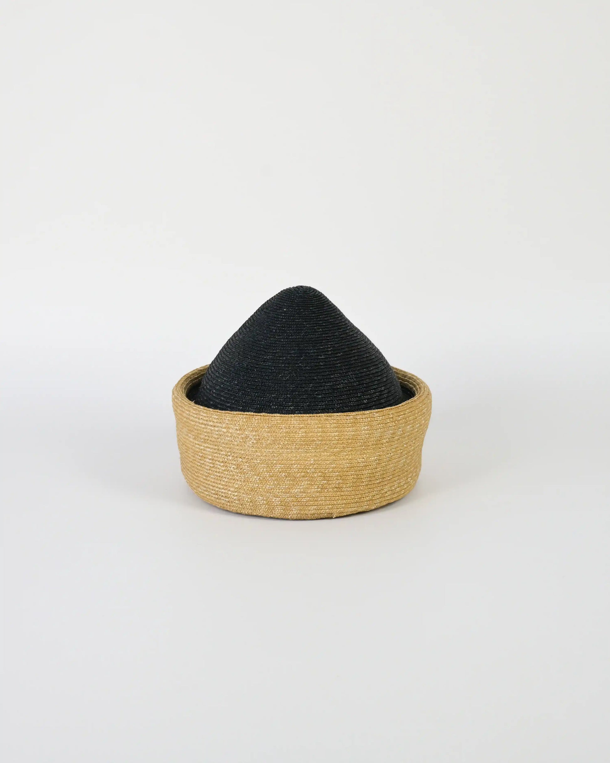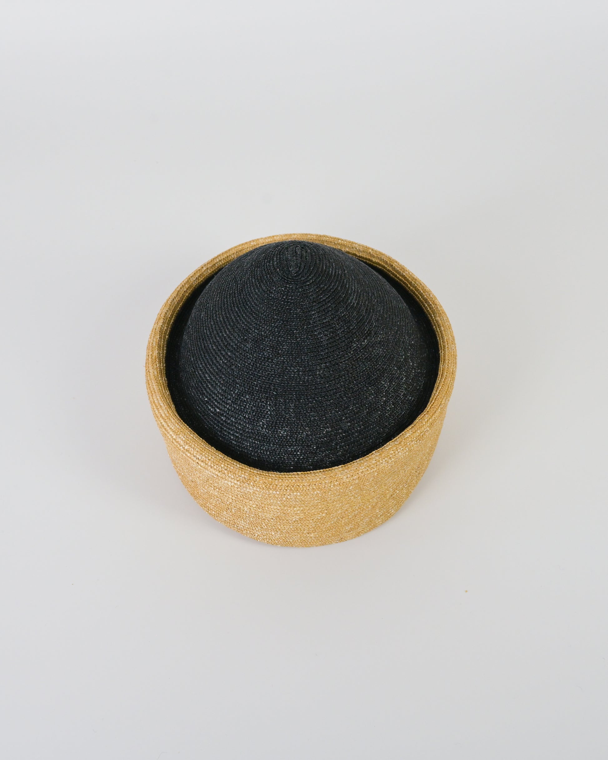 Crafted from fine nature and black wheat straw braid. It adds a striking, sculptural element to any outfit. Perfect for elevating your evening wear or making a statement in your everyday look.